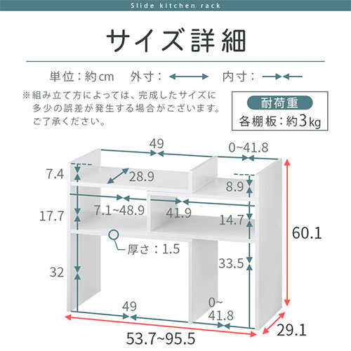 商品外寸:約幅53.7~95.5×奥行29.1×高さ60.1cm