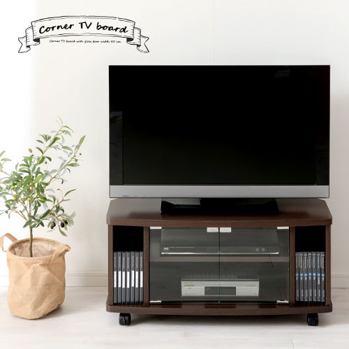 コーナーテレビ台 テレビ台 ガラス 扉付き 棚付き 収納 キャスター付き コンパクト 小型 小さい TV台 テレビボード TVボード TVラック 木製 ロータイプ ハイタイプ 台 北欧 ブラウ てれび