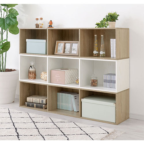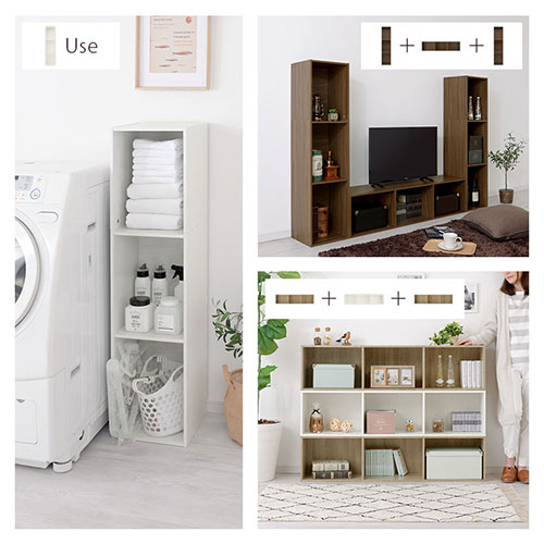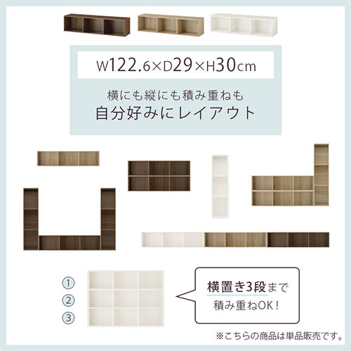 木製ラック リビングボード 横置き 1段 縦置き 3段 約120cm オーク ホワイト ABR920118 ウォールナット