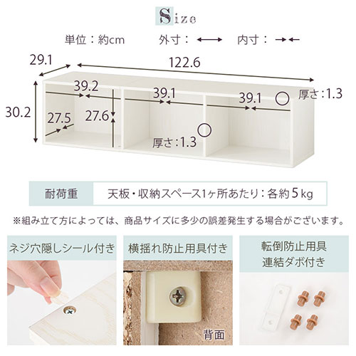商品外寸:約幅122.6×奥行29.1×高さ30.2cm
