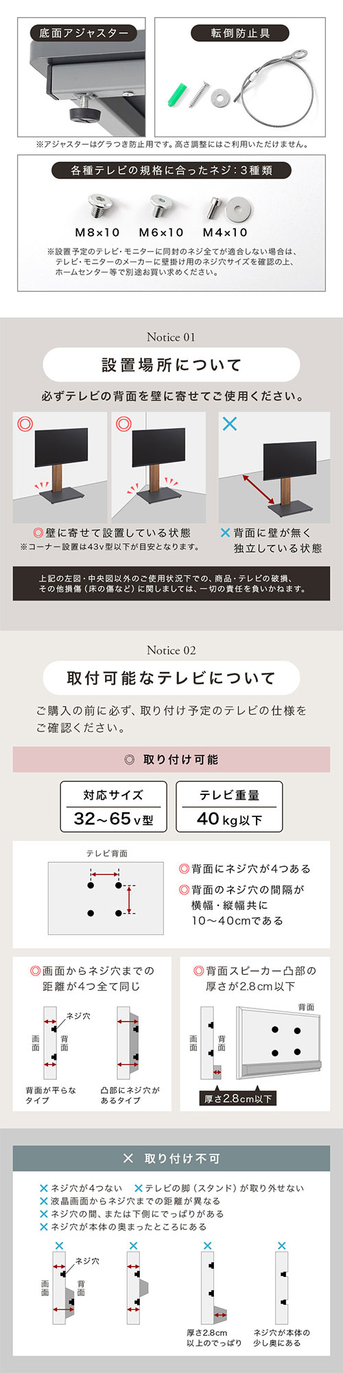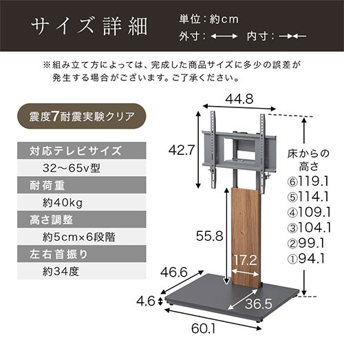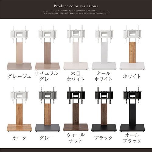 壁寄せテレビ台 高さ6段階 左右首振り グレージュ ナチュラルグレー 木目ホワイト オールホワイト ホワイト オーク グレー ウォールナット ブラック オールブラック