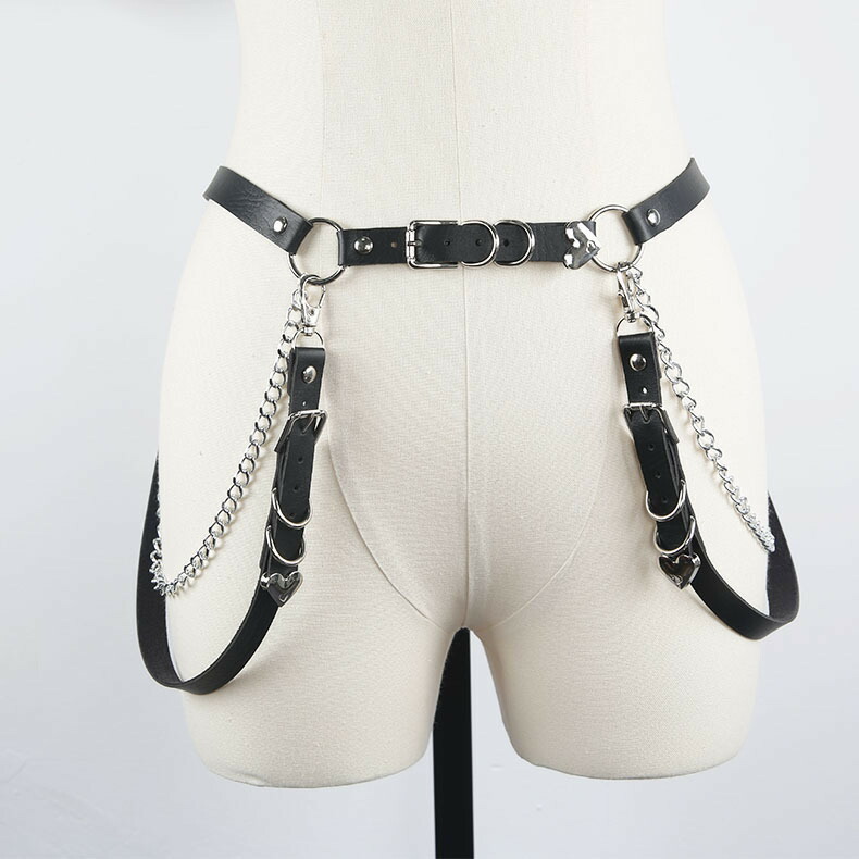 キッズ 大人 ベルト チェーンベルト 吊りバンド サスペンダー ダンス衣装 ダンス用小物 レディース ヒップホップ 衣装 ダンスファッション フェイクレザー ウエスト バック PU