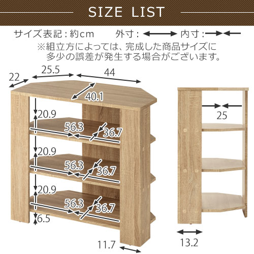 コーナーテレビ台 80cm ハイタイプ 4段 木製 ウォールナット ホワイト TVB018115 オーク