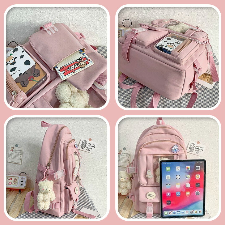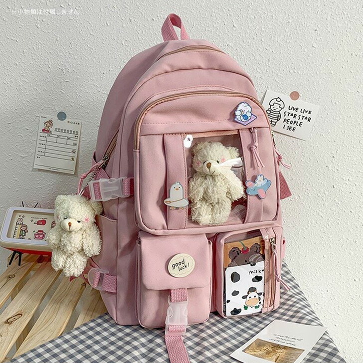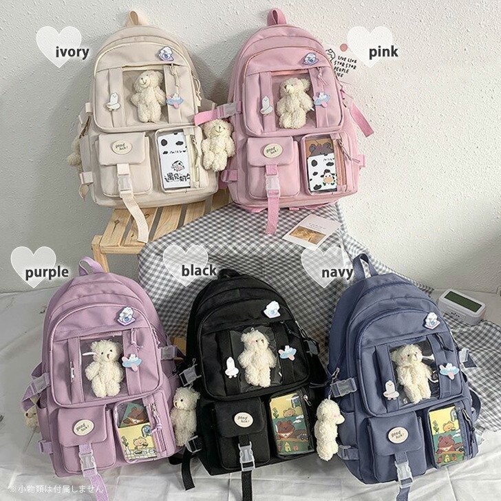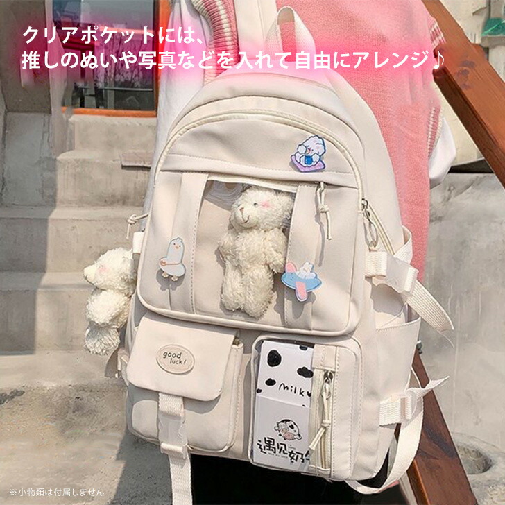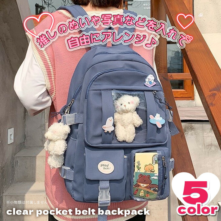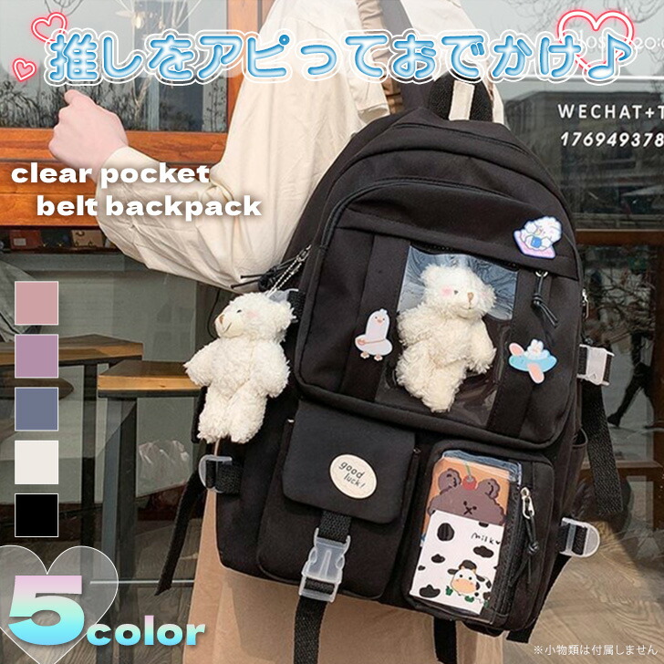 多収納 クリアポケット ベルトデザイン バッグ レディースバッグ バックパック リュック 新登場! アイボリー パープル ネイビー ブラック ピンク