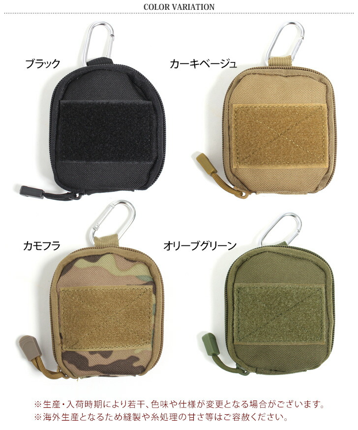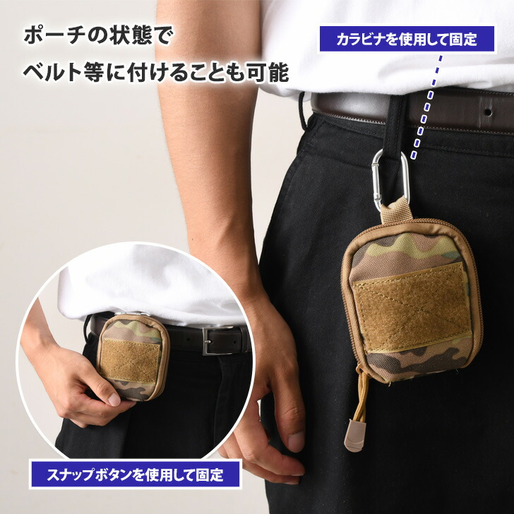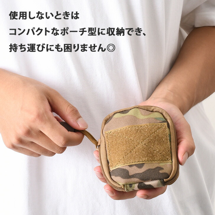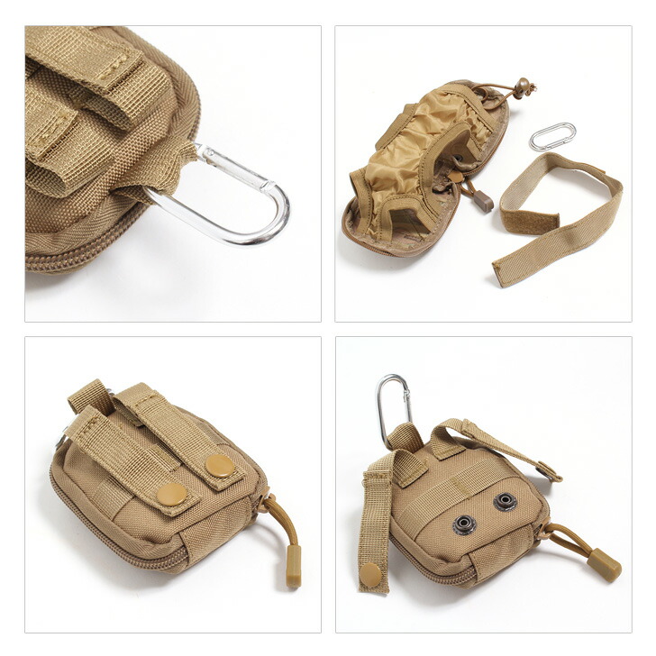 カラビナ付き ミニポーチ型 携帯 折り ブラック カーキベージュ カモフラ オリーブグリーン