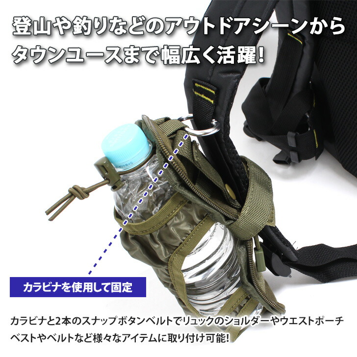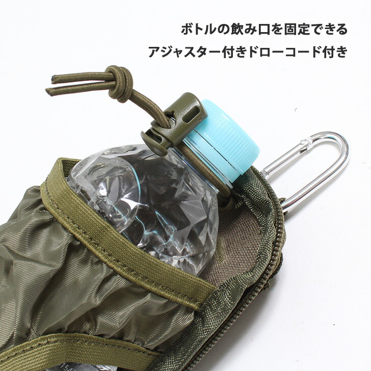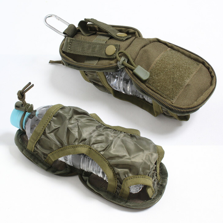 カラビナ付き ミニポーチ型 携帯 折りたたみ 撥水 ミリタリー ボトルホルダー ペットボトルホルダー 水筒ホルダー 水筒 折り畳み 持ち運び カラビナ アウトドア レジャー 釣り リュック バ 登山