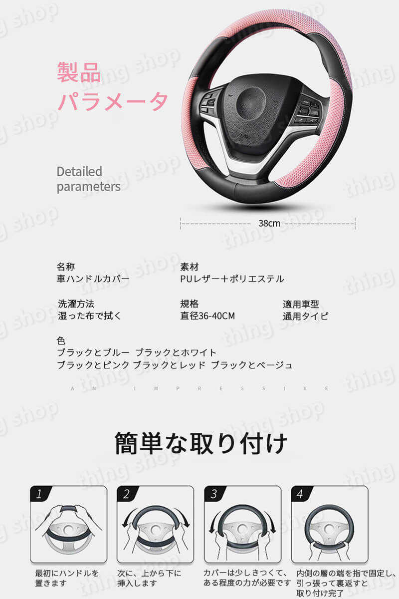 通用タイピ 軽自動車 ステアリングカバ ブラックとブルー ブラックとホワイト ブラックとピンク ブラックとレッド ブラックとベージュ