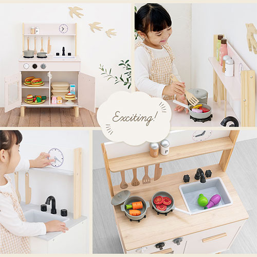 おままごと ごっこ遊びトイ キッチン おもちゃ ままごと ごっこ遊びトイ 家事 豊富な品揃え ホワイト×ナチュラル ホワイト ピンク 要組立品 完成品 完成品・設置付き