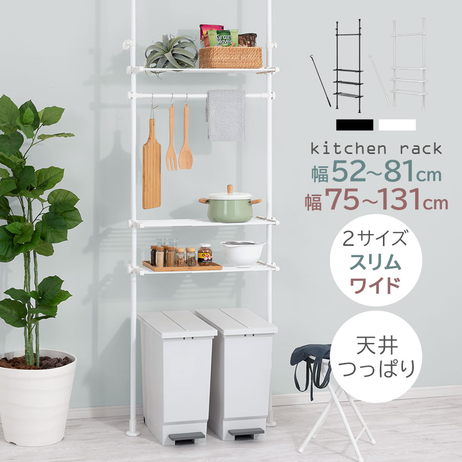 キッチンラック 突っ張り 伸縮 ゴミ箱 スリム ワイド ブラック ホワイト