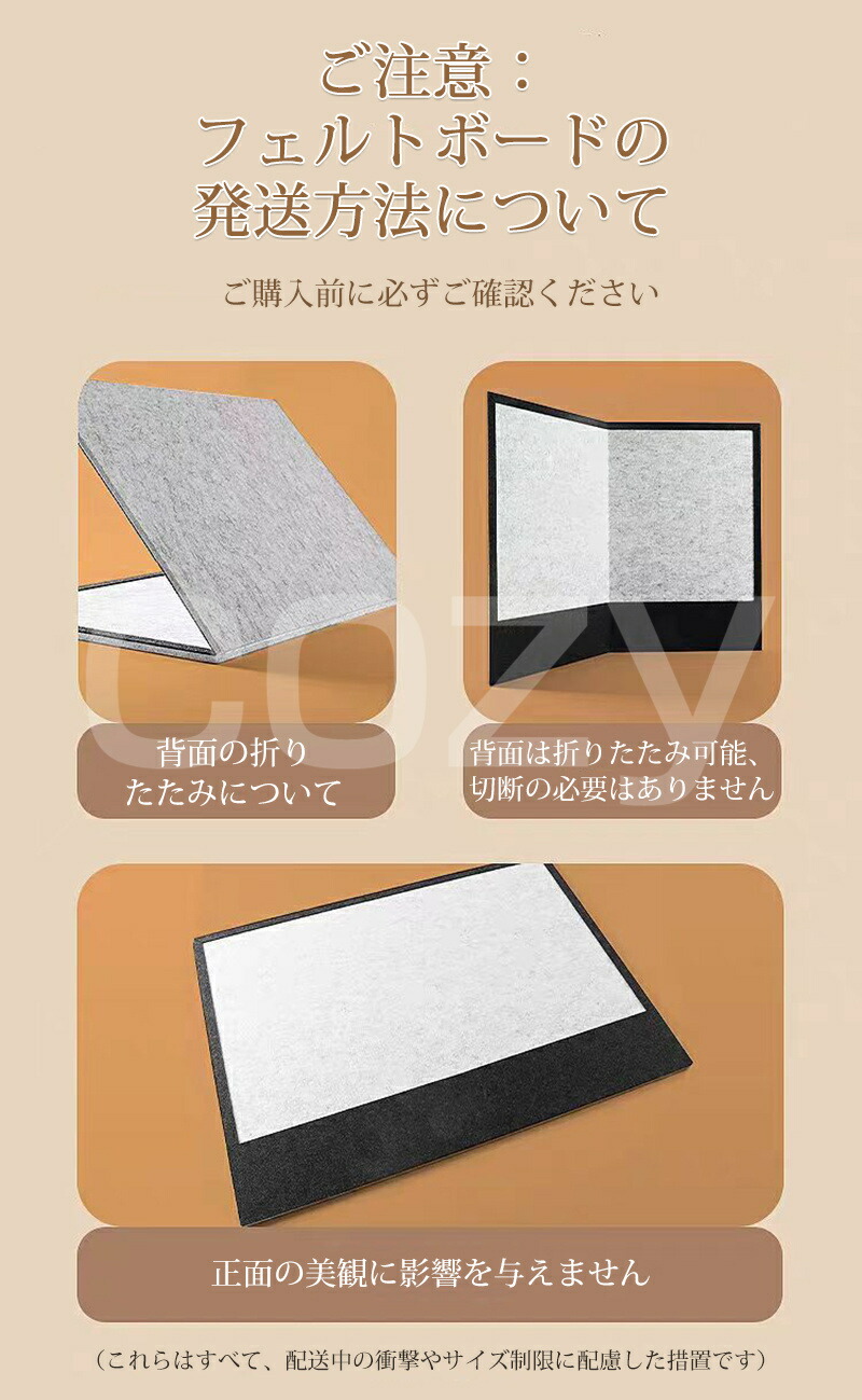 パッケージには高密度フェルトボード1本とピン30枚、面ファスナー、剥がせるシートが含まれています。各コクボードのサイズは30×30cmです。