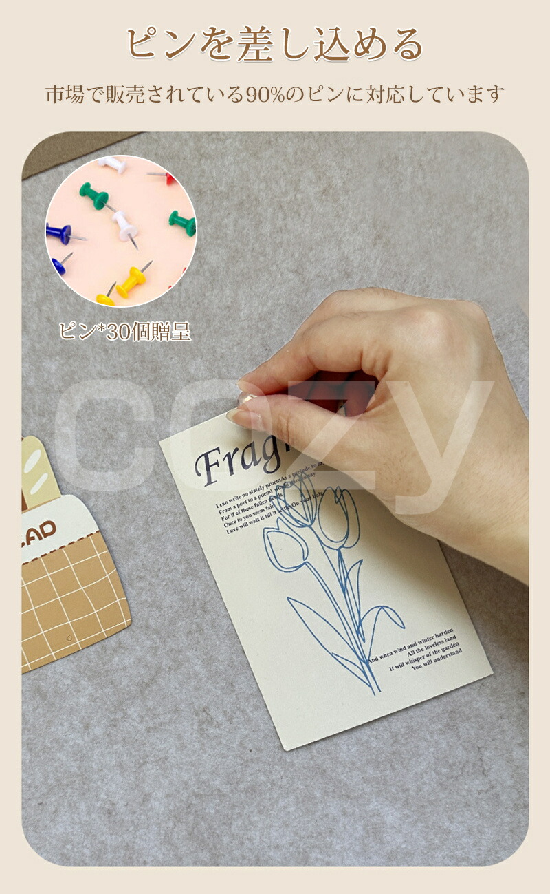 セット内容:フェルトボード + ピン *30個+面ファスナー+剥がせるシート