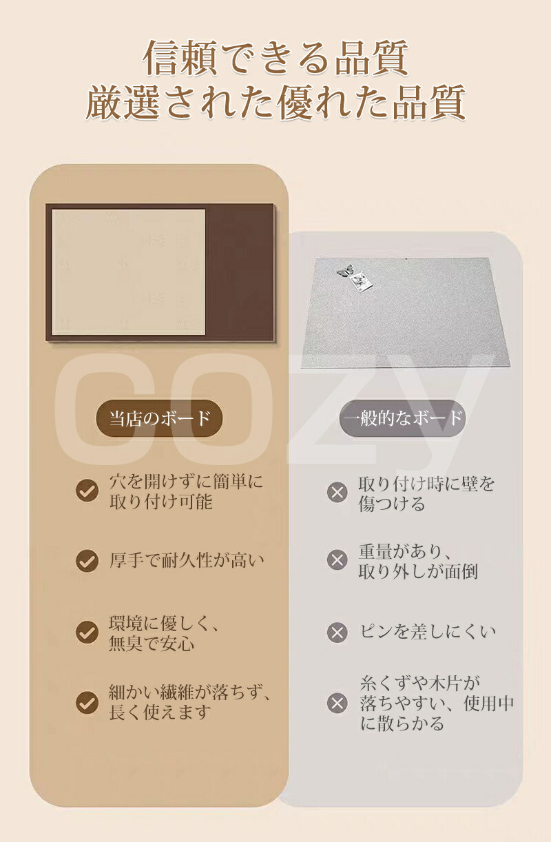 コルクボード 壁掛けはとても軽く、簡単に掛けたり取り外したりできます。また、厚みがあり、ピンがボードを貫通して壁を傷つけずにしっかりと紙を固定ます。