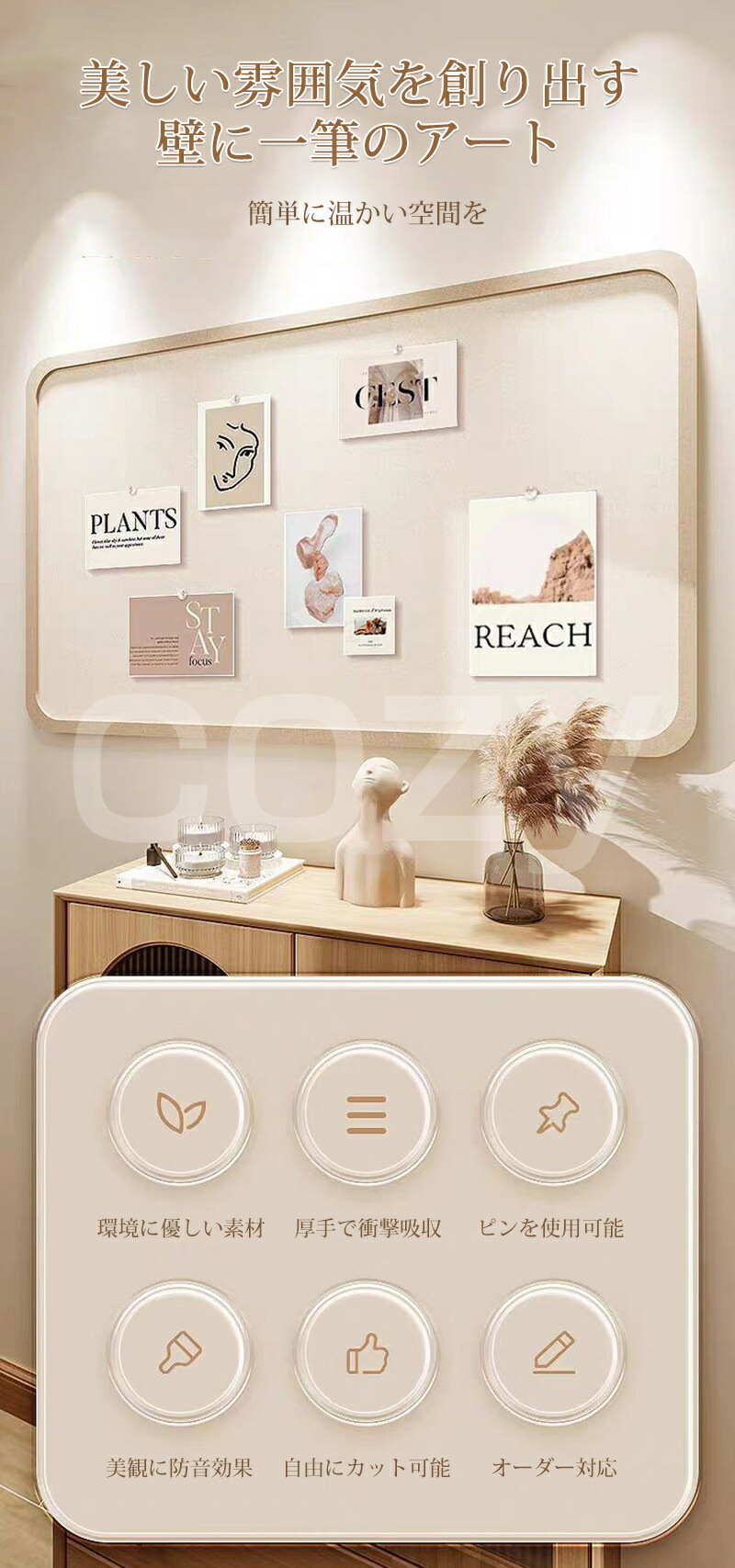 コルクボード 壁掛け おしゃれ 大 写 ベージュフレーム+ライトブラウン コーヒーフレーム+ライトブラウン ブラックフレーム+ホワイト ホワイトフレーム+ピンク 40*60cm 60*80cm 60*120cm