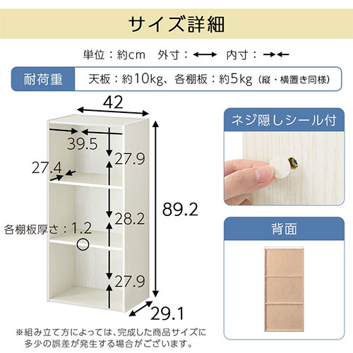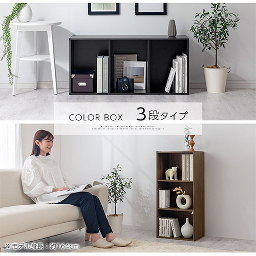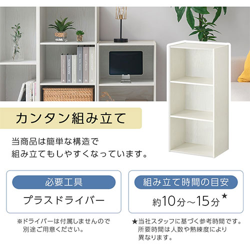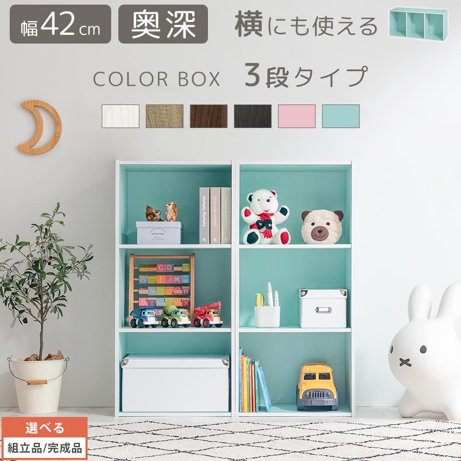 カラーボックス 3段 カラフル 押入れ ホワイト オーク ウォールナット ブラック ピンク ブルー 要組立品 完成品 完成品・設置付き