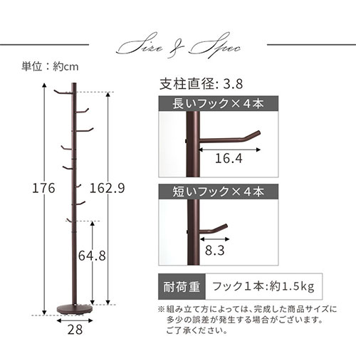 ポールスタンド ポールハンガーラック ホワイト ブラウン ブラック