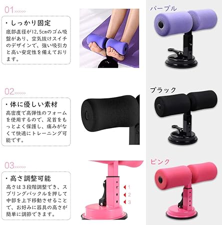 吸盤式 筋肉トレニーング 腹筋 足固定 ブラック パープル ブルー レッド