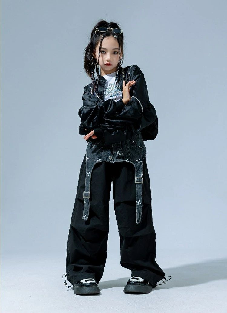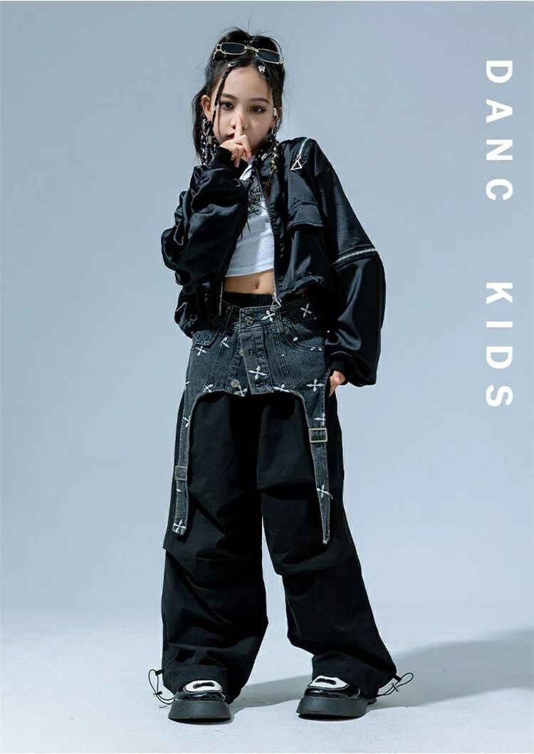 倍 ダンス衣装 キッズ セットアップ キッズ ベビー マタニティ 新登場! 110cm 120cm 130cm 140cm 150cm 160cm 170cm 180cm 4点セット タンクトップ ジャケット ヒップカバー パンツ