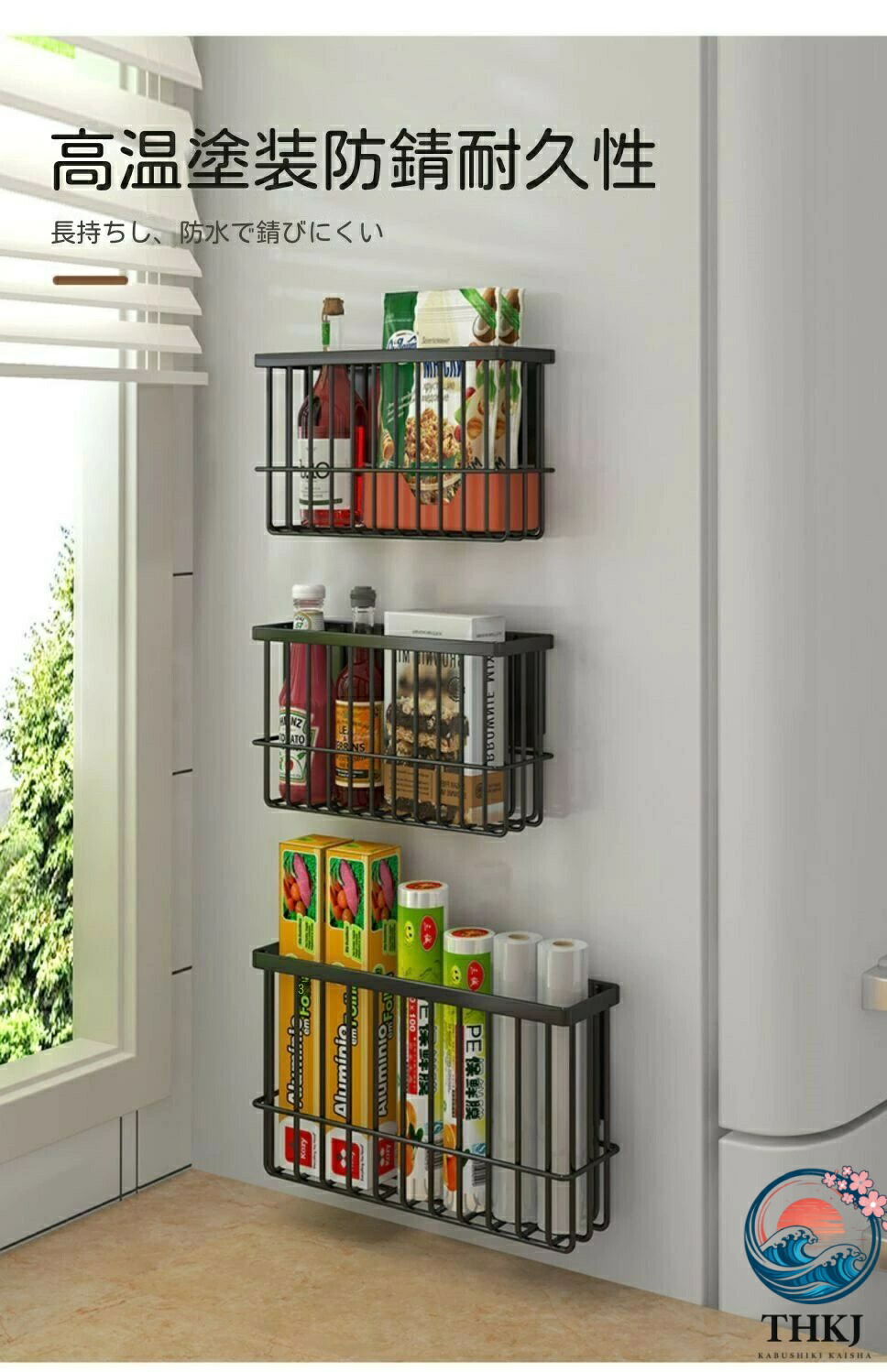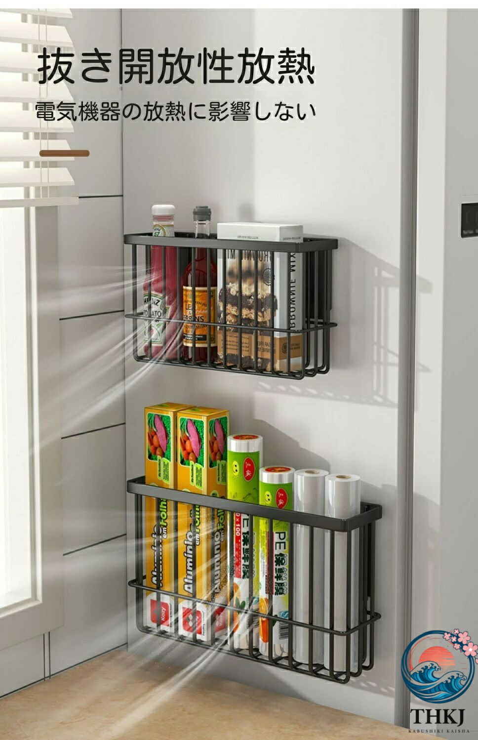 冷蔵庫用磁気ラック 可動式磁気収納棚 キッチン整理用品 冷蔵庫マグネット 早い者勝ち ブラック ホワイト [M]中サイズ [L]大サイズ