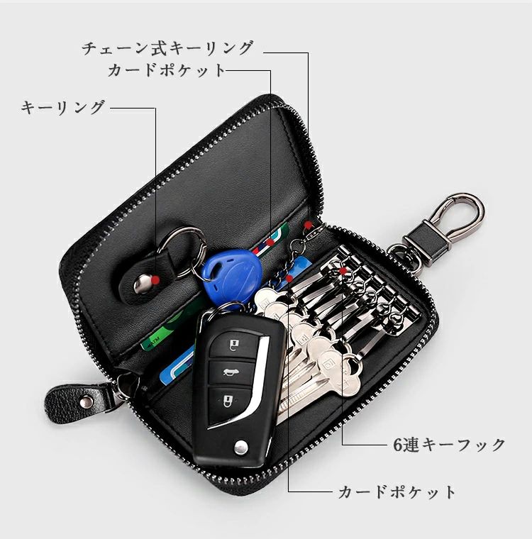 レディース おしゃれ キーケース カードケース メンズ カード入れ 大容量 スマートキー 6連 使いやすい 本革 多機能