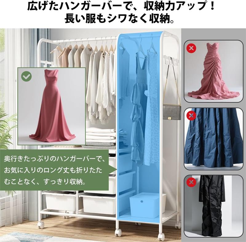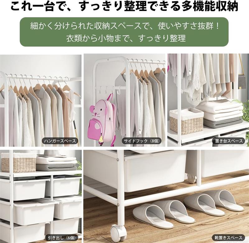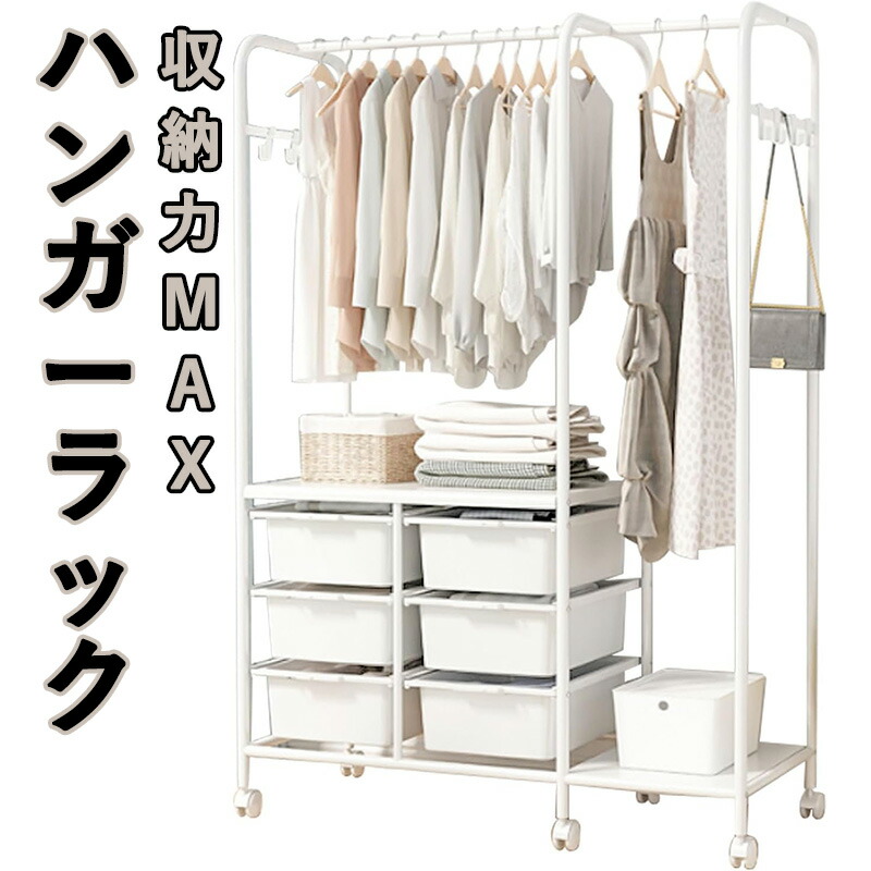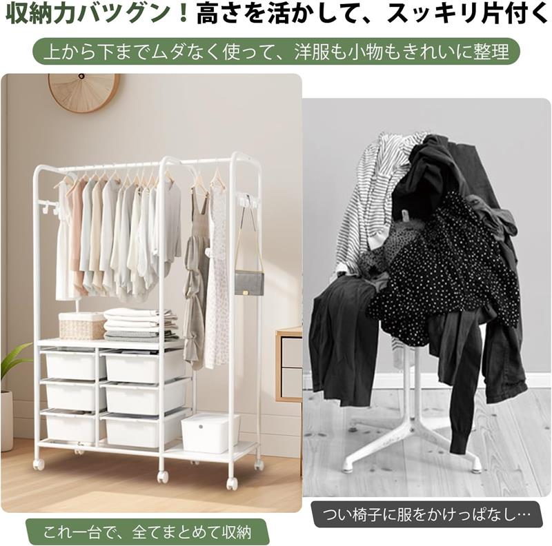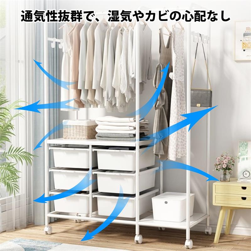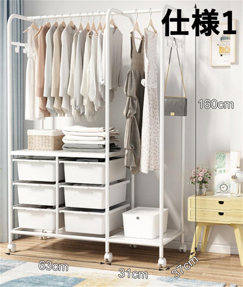 ハンガーラック スリム 頑丈 キャスタ 仕様1(収納ボックス6つ) 仕様2(収納ボックス6つ) 仕様3(収納ボックス4つ) 仕様4(収納ボックス2つ)
