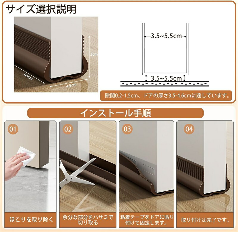 ドア 隙間 防音 ドアすきま風防止ガー ブラック グレー ブラウン ホワイト