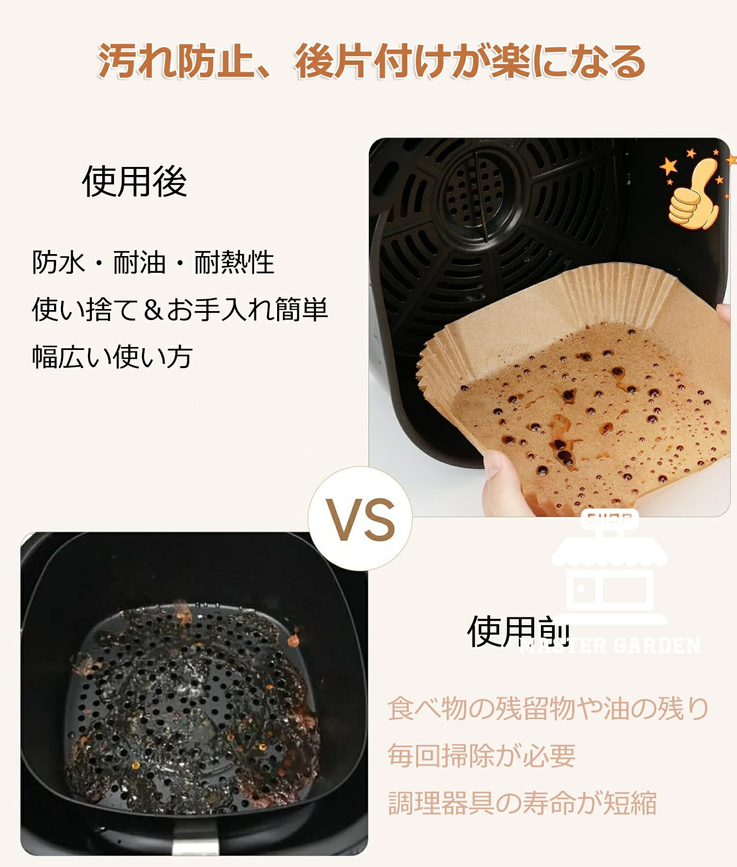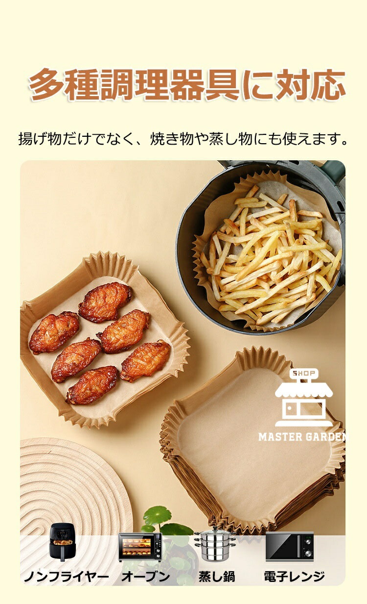 エアフライヤー用紙 ノンフライヤー 3 食器 カトラリー グラス 使い捨て食器 使い捨て皿 器 新登場! 茶色(四角形100枚) ホワイト(四角形100枚) 茶色(丸型100枚) ホワイト(丸型100枚) 16cm*4.5cm 20cm*4.5cm