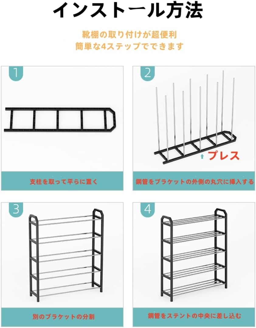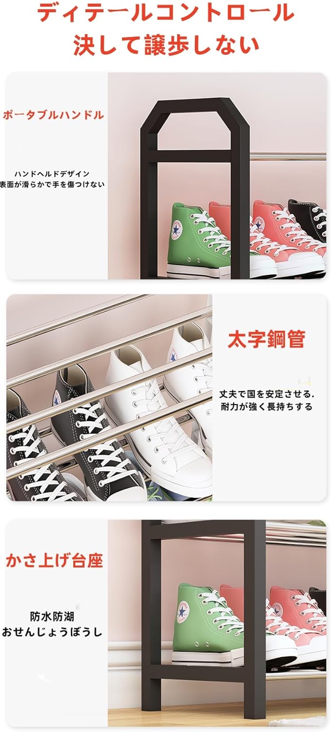 簡易シューズラック 3段 4段 5段 ブラック(3段) ブラック(4段) ブラック(5段) ホワイト(4段) ホワイト(5段) 43*19*42cm 43*19*65cm 58*19*42cm 58*19*56cm 58*19*65cm 73*19*42cm 73*19*65cm 73*19*75cm