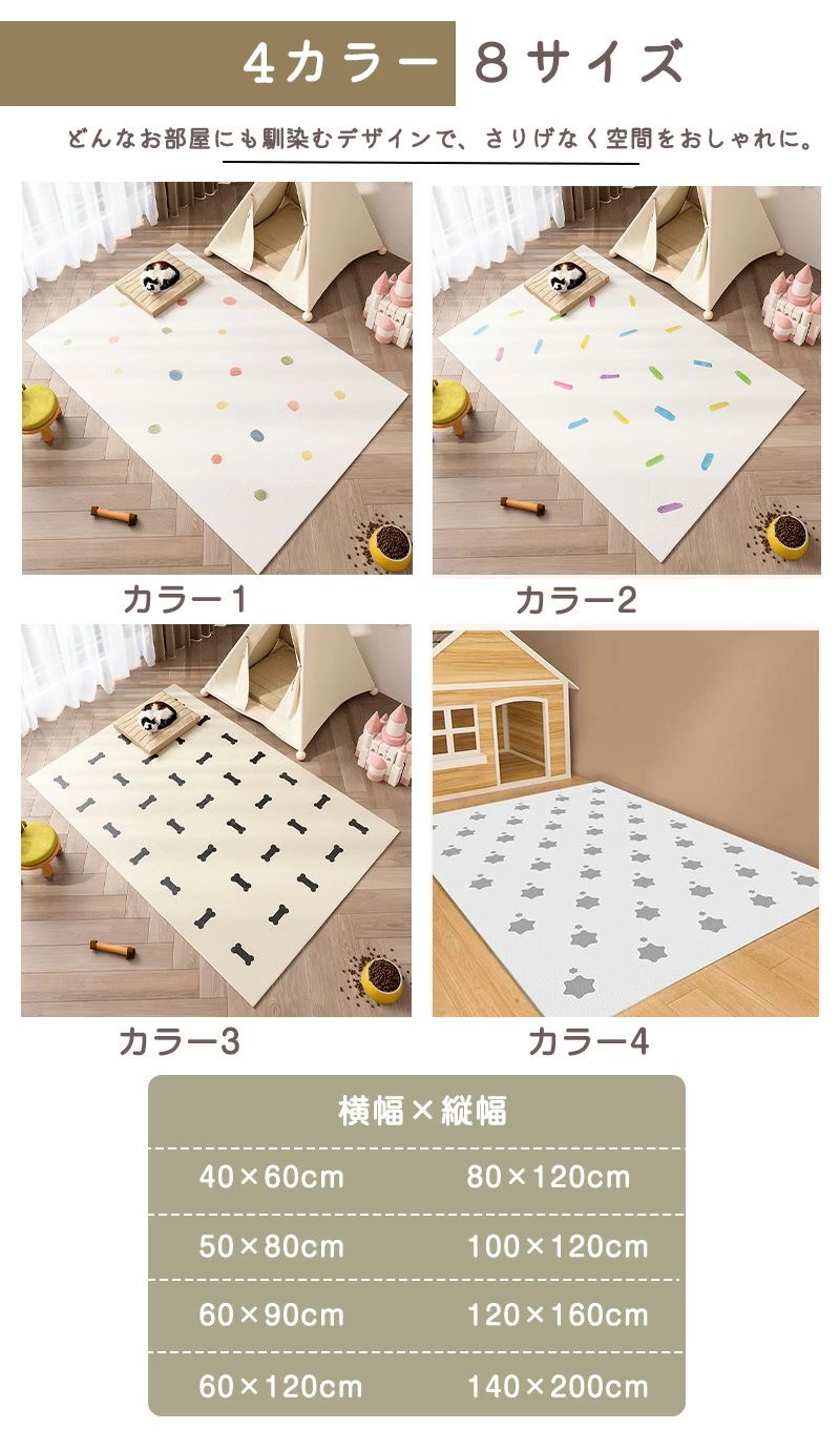 ペットマット 防水マット 撥水 ラグ ペット ペットグッズ 通販 カラー1 カラー2 カラー3 カラー4 約40*60cm 約50*80cm 約60*90cm 約60*120cm 約80*120cm