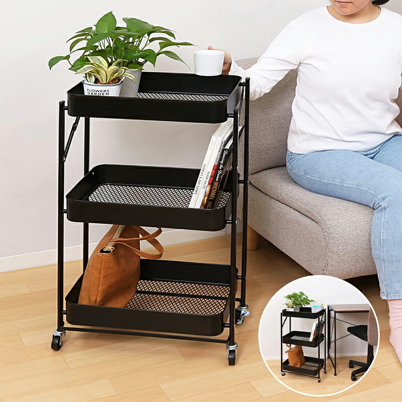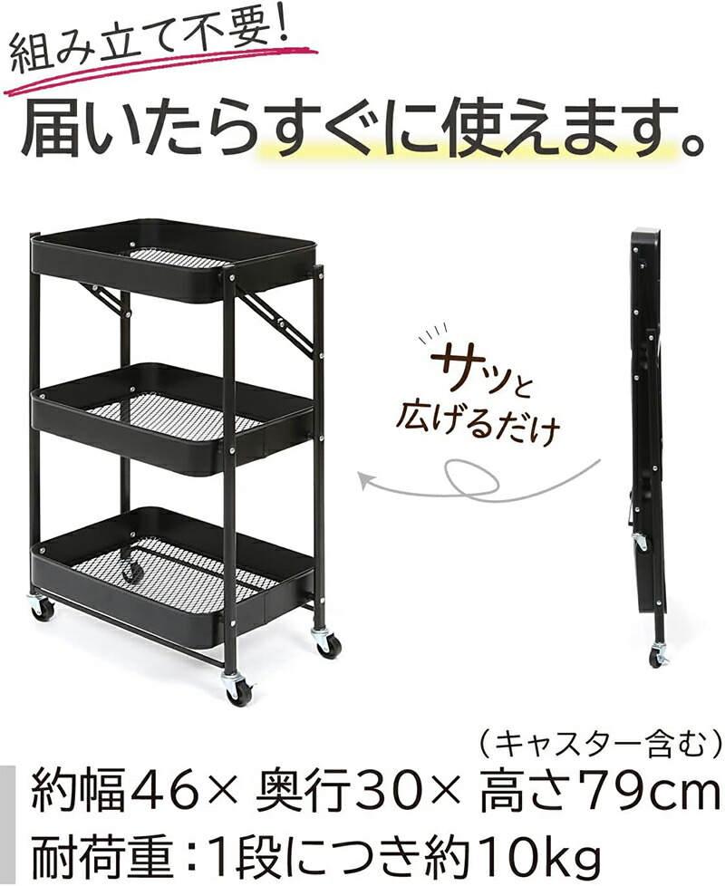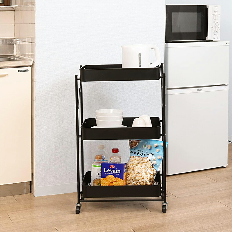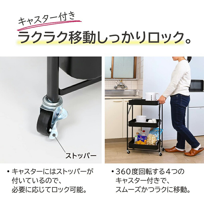 アストロ キッチンワゴン 3段 ブラッ ブラック ホワイト