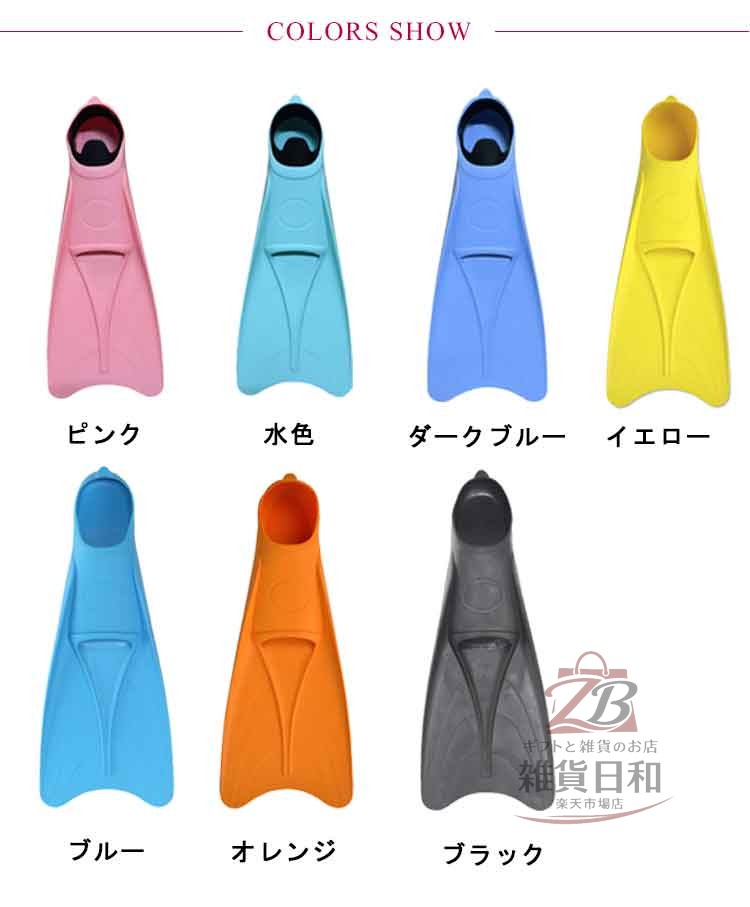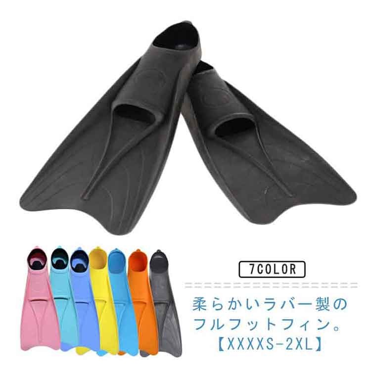 ラバー フルフットフィン ロングフィン ブラック オレンジ ブルー イエロー ダークブルー 水色 ピンク XXXXS XXXS XXS XS S M L XL 2XL