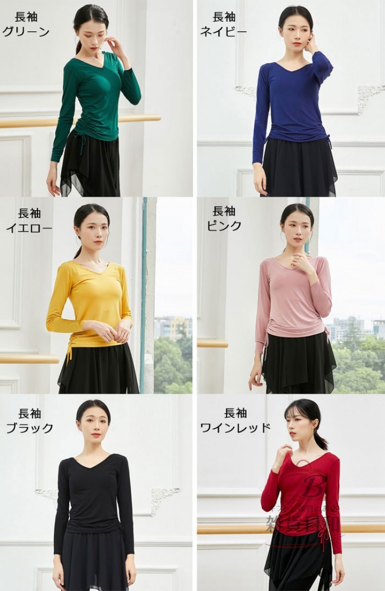 ダンストップス バレエ ヨガ 長袖 7 S M L XL XXL XXXL 4XL 長袖-グリーン 長袖-ネイビー 長袖-イエロー 長袖-ピンク 長袖-ブラック 長袖-ワインレッド 7分袖-ネイビー 7分袖-グリーン 7分袖-イエロー 7分袖-ピンク 7分袖-ブラック 7分袖-ワインレッド 半袖-ネイビー 半袖-イエロー 半袖-ピンク 半袖-ブラック 半袖-ワインレッド