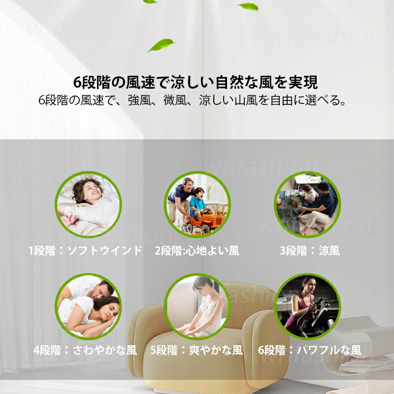 風速6段階:風量の調節が可能な6段階の風速設定があります。暑い夏や寒い冬、快適な風をお楽しみください。