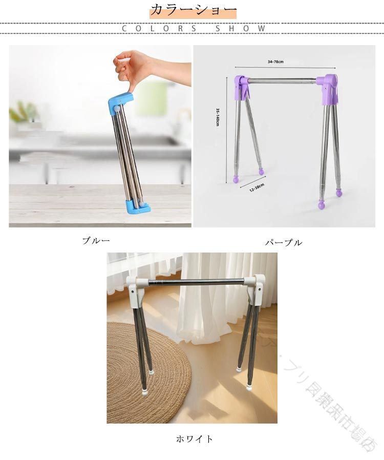 室内干し スタンド 伸縮 タイプ 折り 日用品雑貨 文房具 手芸 超目玉商品 ブルー パープル ホワイト