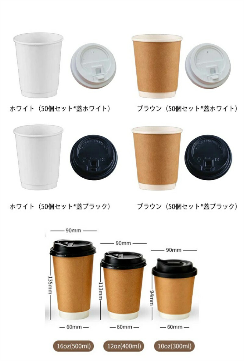 50個 蓋付き 紙コップ 二重クラフト キッチン用品 食器 調理器具 超目玉商品 ホワイト ブラウン ホワイト ブラック