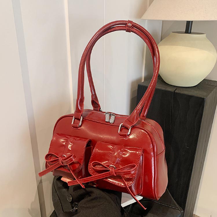 スクエアミニボストンバッグ レディース バッグ 小物 ブランド雑貨 続々登場 ブラック ホワイト ピンク シルバー レッド