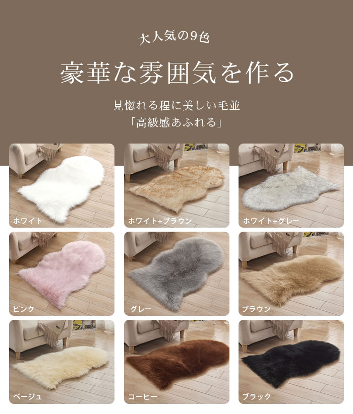 ラグ ソファー ムートンラグ フェイク ホワイト ホワイト+ブラウン ホワイト+グレー ピンク グレー ブラウン ベージュ コーヒー ブラック