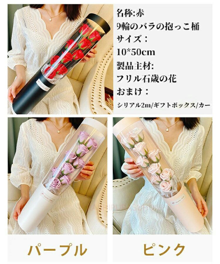 枯れない花 ソープフラワー バラの花束 レッド ピンク パープル
