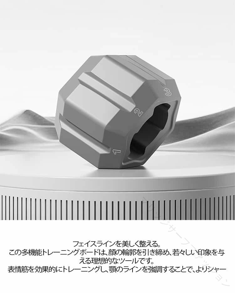 男女兼用で顎ラインを引き締めるこのフェイスフィットネスボールは、男性と女性の両方に設計されており、二重あごを防ぎ、輪郭の整った顎を実現するためのエクササイザーです。簡単なエクササイズで顔の筋肉を効果的に活性化します。フェイスラインを美しく整えるこの多機能トレーニングボードは、顔の輪郭を引き締め、若々しい印象を与える理想的なツールです。表情筋を効果的にトレーニングし、顎のラインを強調することで、よりシャープで魅力的なフェイスラインを実現します。ハンズフリーでどこでもトレーニング軽量で持ち運びに便利なデザインにより、いつでもどこでも簡単に使用できます。忙しい日常の中でも、短時間で効果的なトレーニングが可能です。食欲を抑え、健康的な体重管理をサポート咀嚼運動は食欲を自然に抑える効果があり、体重管理にも役立ちます。顔の筋肉を鍛えることで、全身の健康にも貢献します。安全で耐久性のある素材食品グレードのシリコンを使用しており、安全性と耐久性を兼ね備えています。耐摩耗性に優れ、再利用可能で、長期間にわたって安心してお使いいただけます。耐熱性があり、水洗いも可能で衛生的です。3in1フェイスヨガボール3つのレベルがあり、顔の筋肉をトレーニングし、活性化して、引き締まった外観をサポートします。