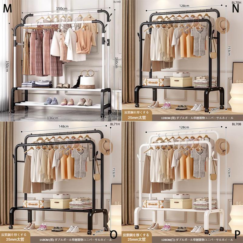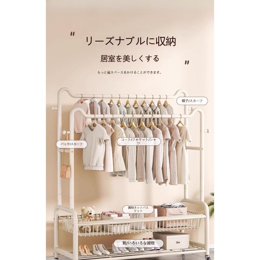 ハンガーラック おしゃれ 頑丈 キャスター付き パイプハンガー 衣類収納 洋服掛けラック 子供 洋服収納 室内干し 洗濯物落ち防止対策 梅雨対策 洗濯物