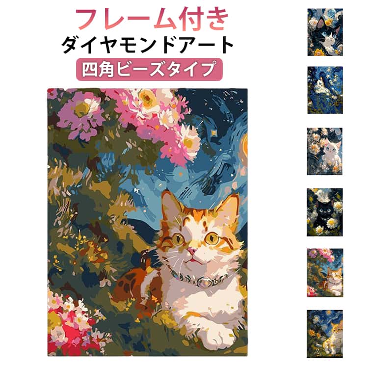 ダイヤモンドアート 四角ビーズ 猫 ね 手芸 クラフト 生地 道具 キット ビーズクラフト道具 ビーズキット 早い者勝ち タイプ1(四角ビーズ) タイプ2(四角ビーズ) タイプ3(四角ビーズ) タイプ4(四角ビーズ) タイプ5(四角ビーズ) タイプ6(四角ビーズ) タイプ7(四角ビーズ) 30*40cm(ペン+フレーム) 40*50cm(ペンのみ)