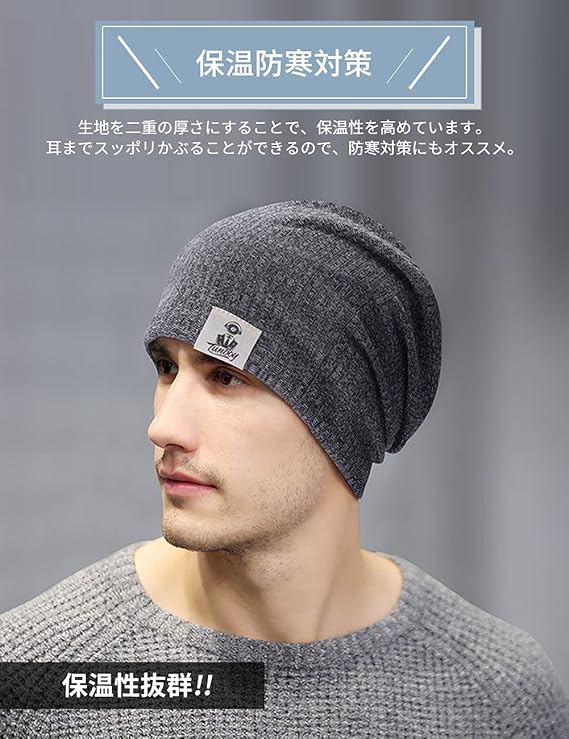 ・【二重構造・保温性】軽量で保温性に優れた、伸縮素材も防寒も抜群のニット帽です。生地を二重の厚さにするので、裏側がふわふわコットン素材を加工して、保温性を高めています。柔らかくて通気性も抜群!