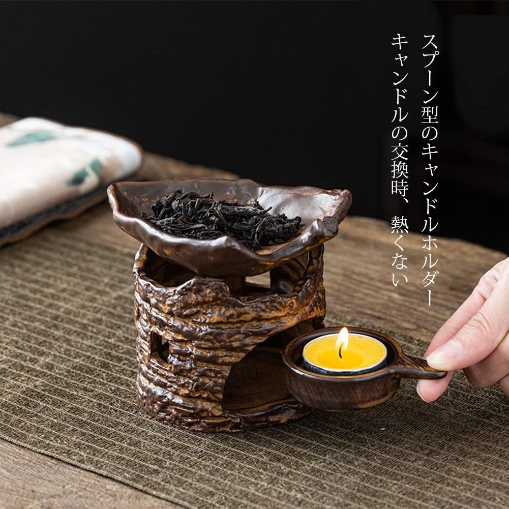 茶香炉一式セット茶香炉 陶器 アロマ炉 浮き彫り 加熱 茶こうろ 小皿 キャンドルトレイ ティーウォーマー 茶色 レトロ 茶葉用