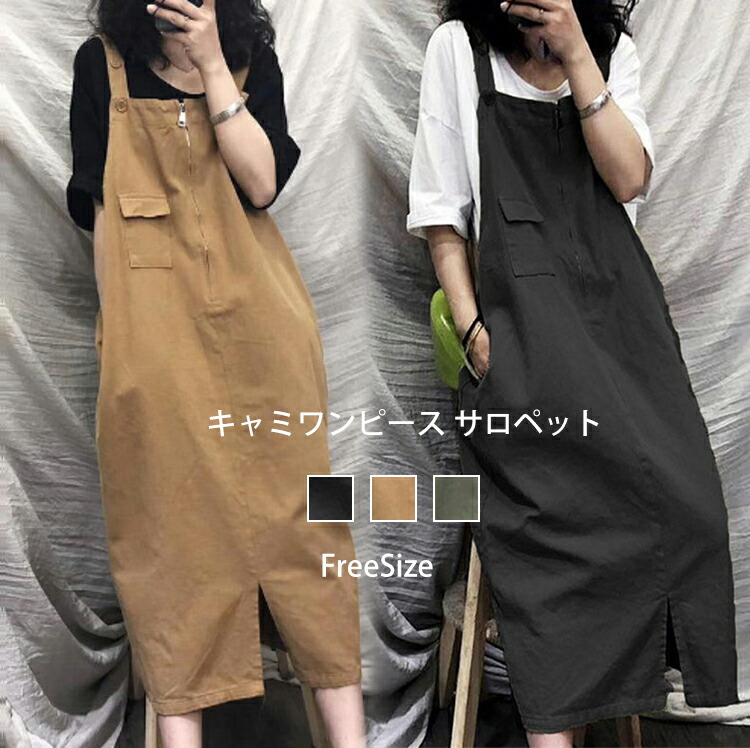 キャミワンピース サロペット ワンピー ブラック キャメル グリーン