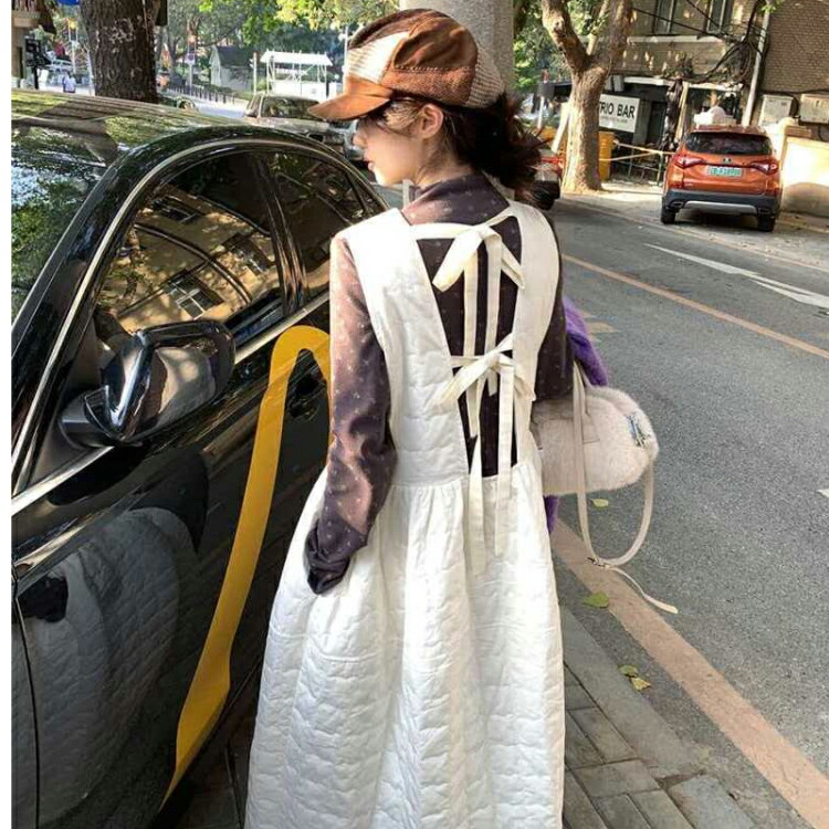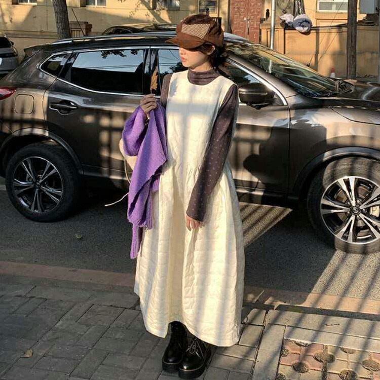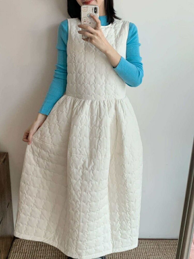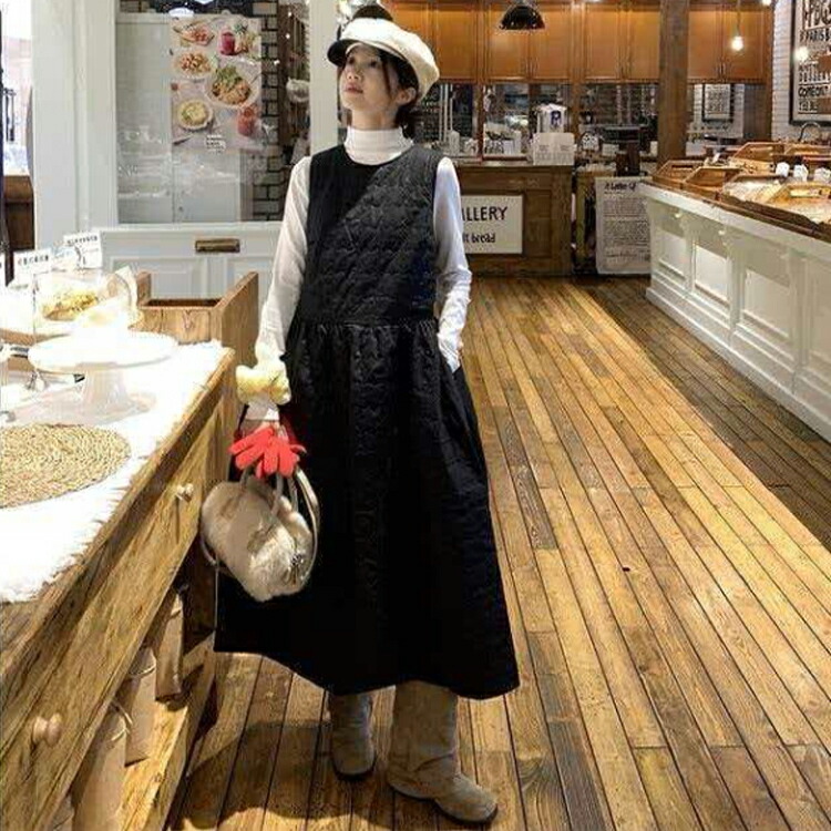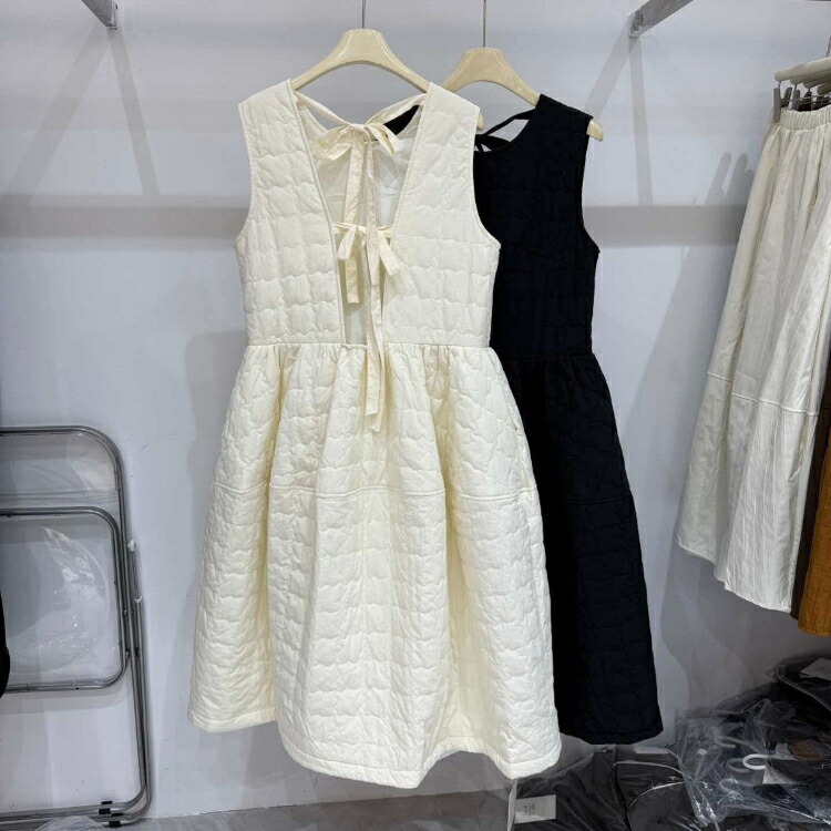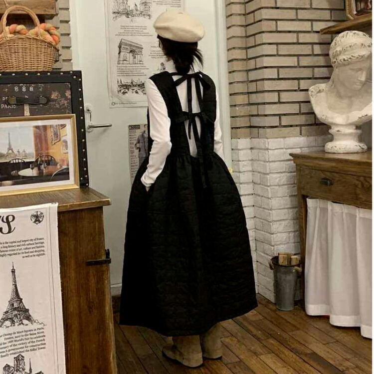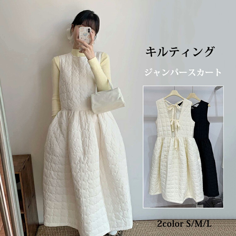 ジャンパースカート 中綿 ワンピース ブラック ホワイト S M L