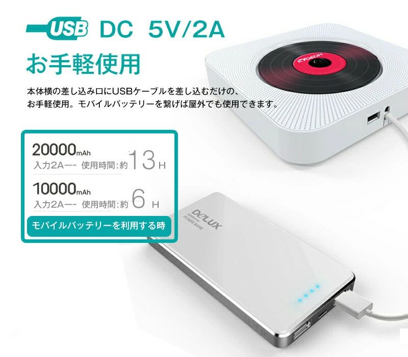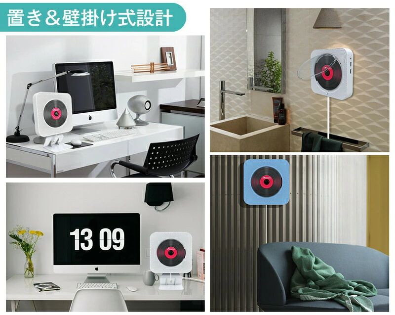 CD プレーヤー 壁掛け DVDプレー ホワイト ブラック ブルー ピンク