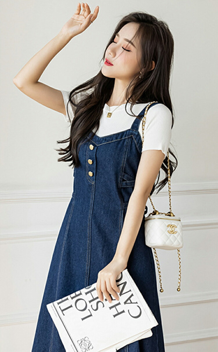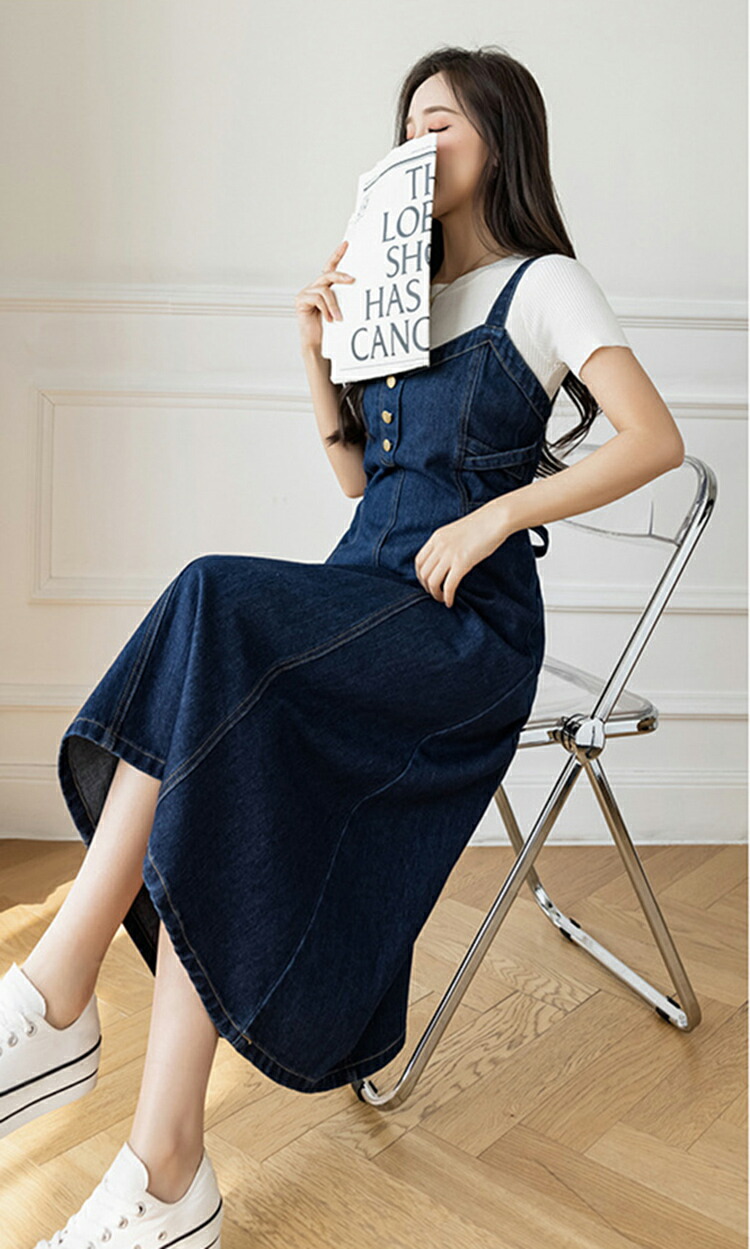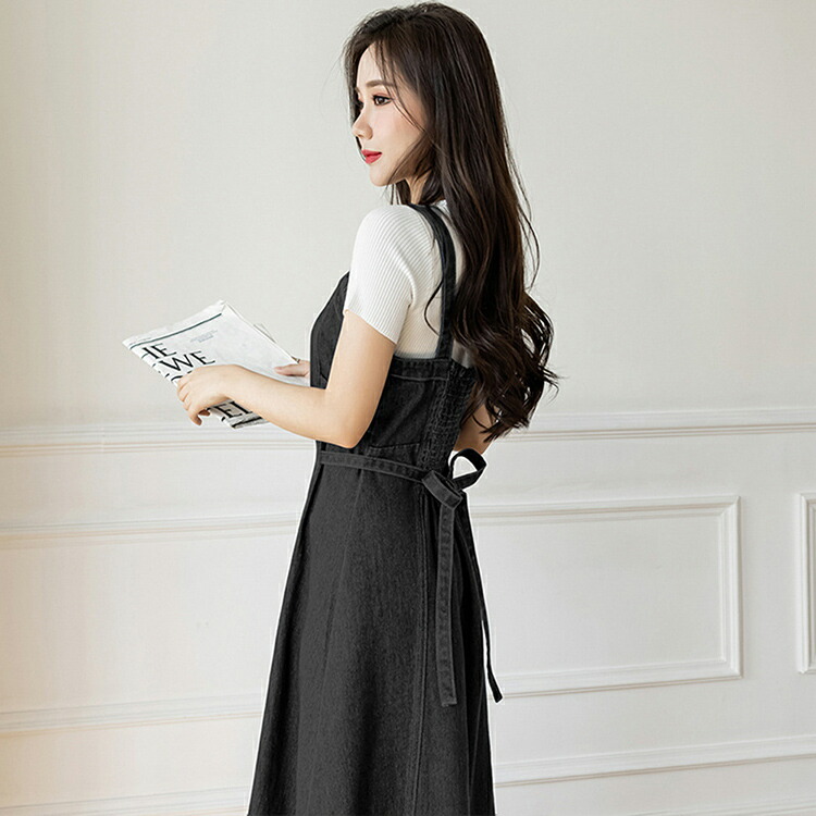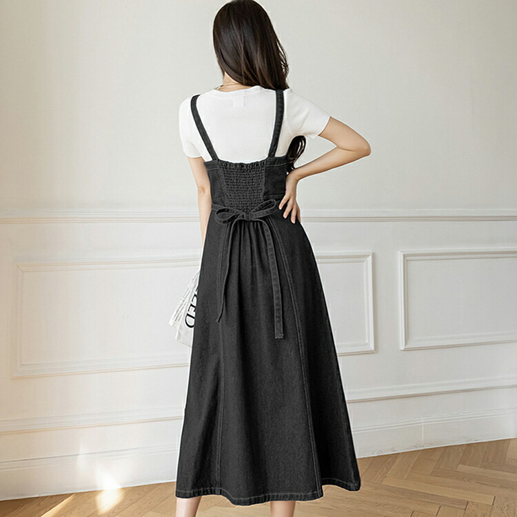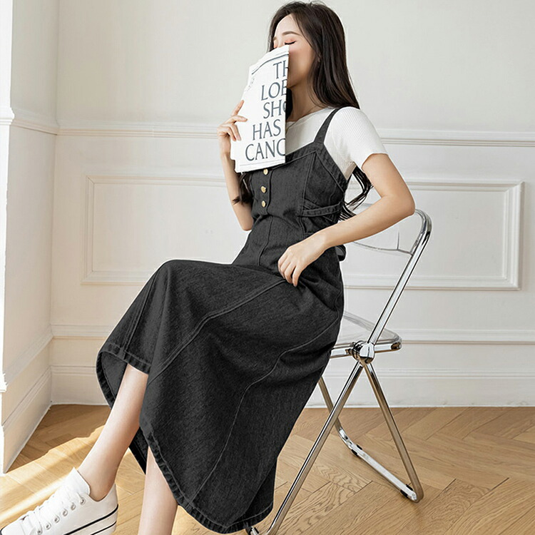 デニム ジャンパースカート サロペット グレー 紺色 M L XL 2XL