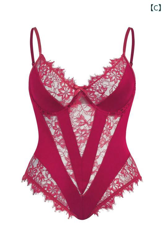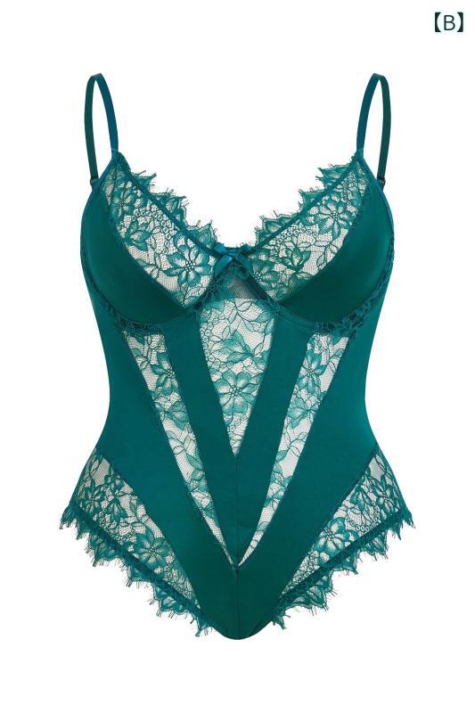 レディース セクシー レース ボディス インナー 下着 ナイトウエア 新作 A:黒 B:緑 C:ワインレッド 1XL 2XL 3XL 4XL