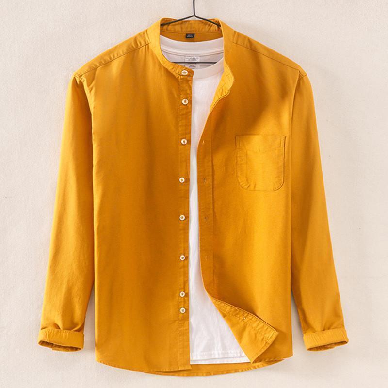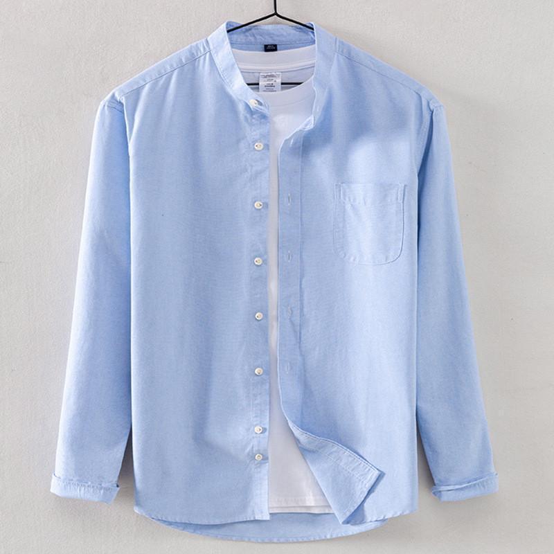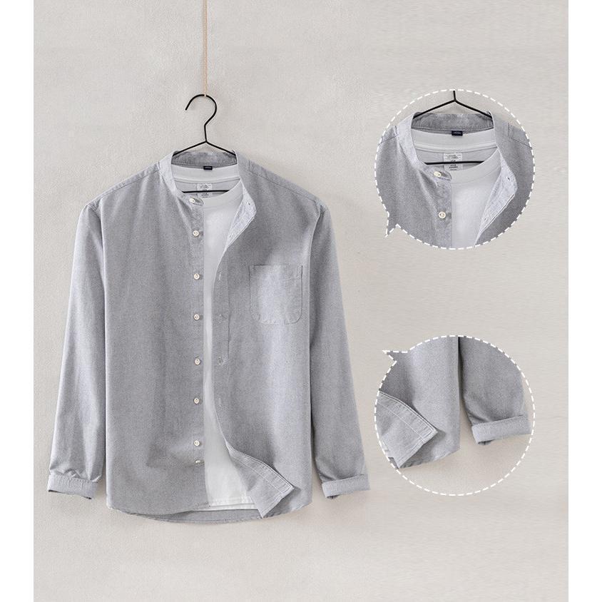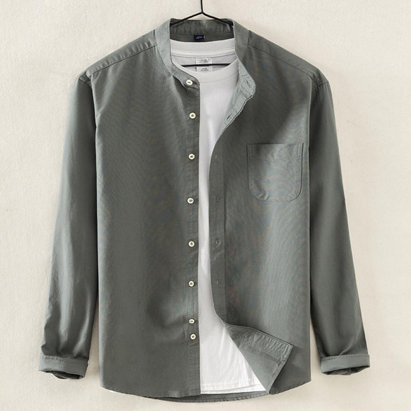 長袖シャツメンズカジュアルシャツバンドカラーシャツ立ち襟ス無地スタンドカラービジネスカジュアル40代50代60代秋物
