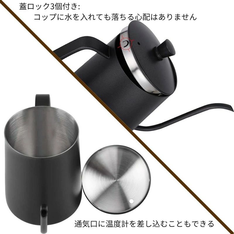 コーヒードリップポット 目盛り付き ド コーヒー お茶用品 ドリップポット 新登場! シルバー ベージュ ブラック 350ML 600ML