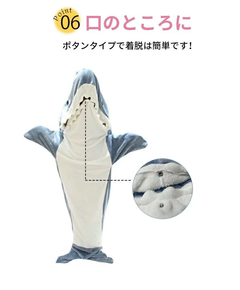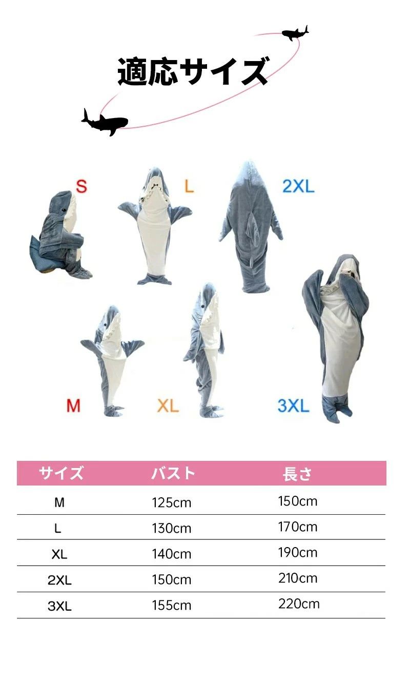 サメ 寝袋 着る毛布 パジャマ ブラン ブルー ピンク M L XL 2XL 3XL